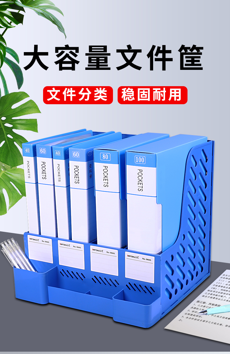 加厚文件架筐子多层四栏文件框办公用品大全资料架档案文件夹收纳盒置物架 四栏-带笔筒-蓝色-加厚款