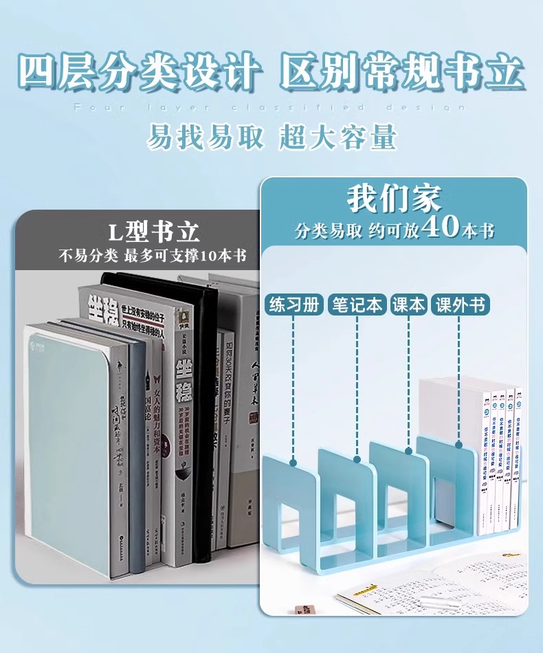> 四格书立亚克力收纳架防倒收纳盒桌上简易置物架档案书夹ins风 四栏⭐冰蓝色书立