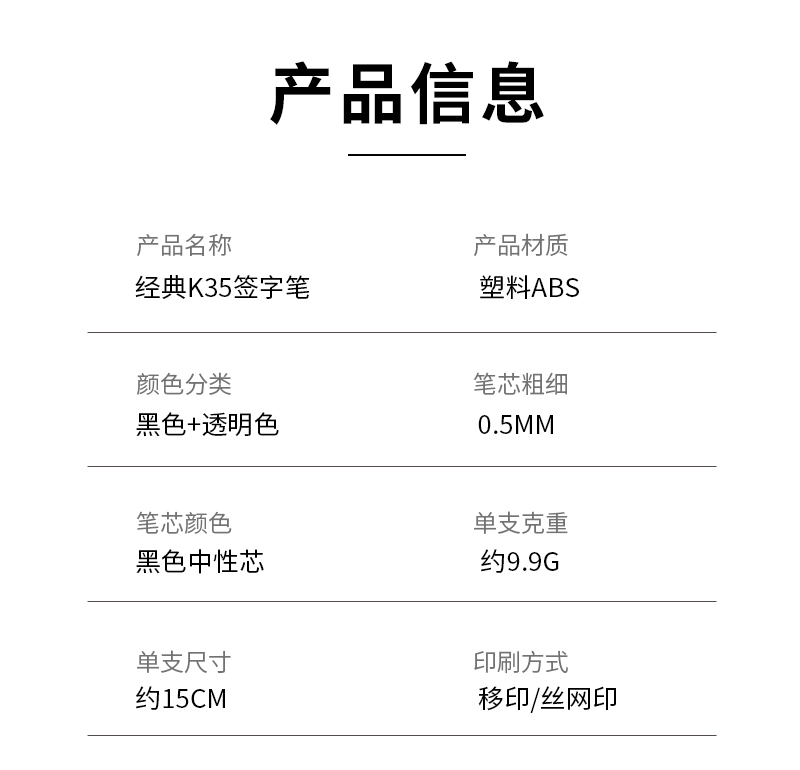 - 商品名称:按动中性笔定制印logo广告刻字签字笔蓝黑色商务办公水笔 100支免费印刷