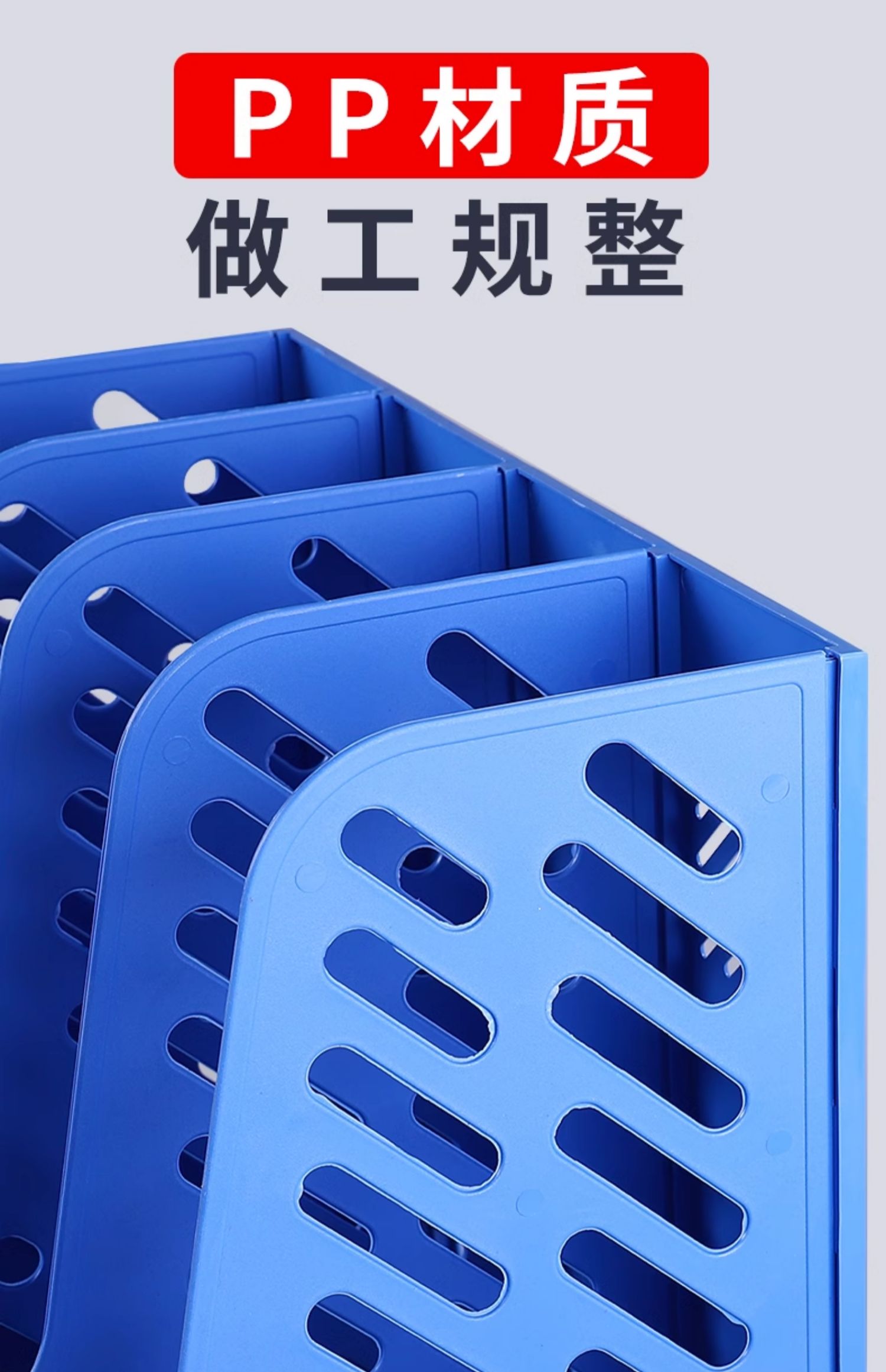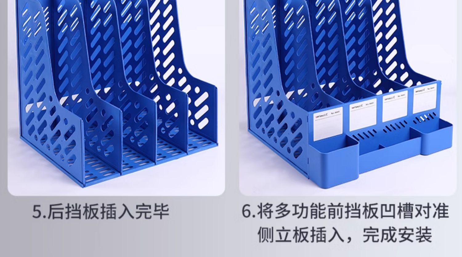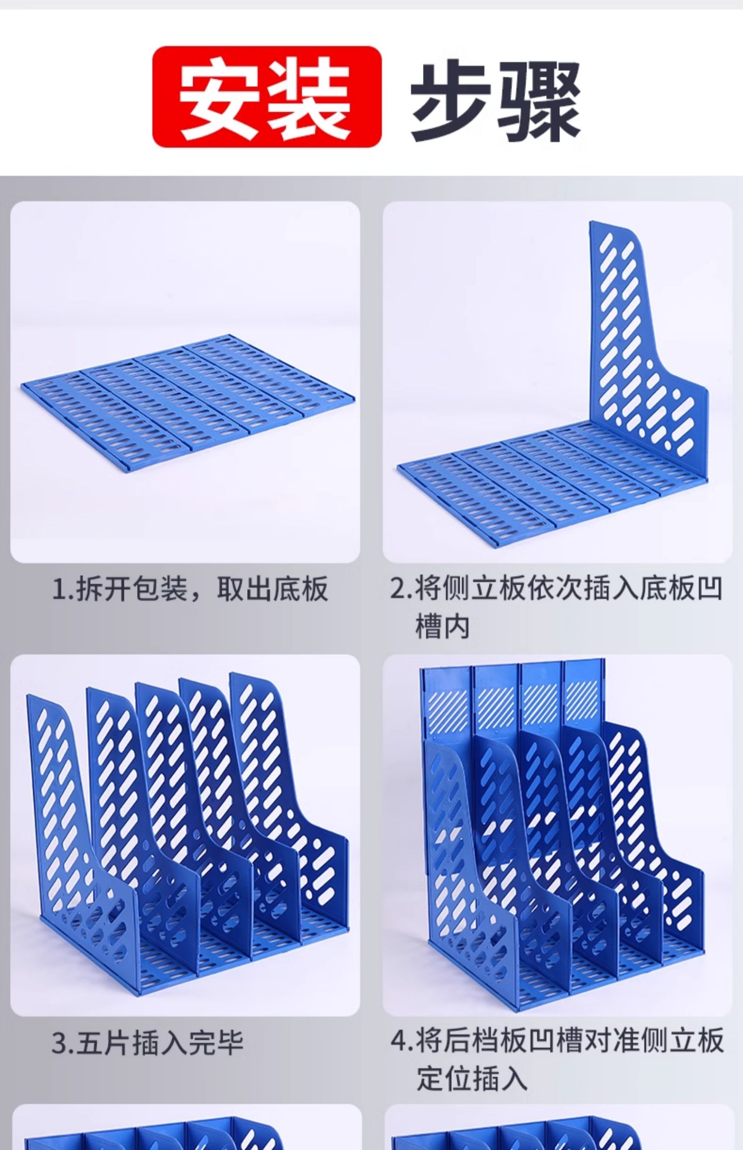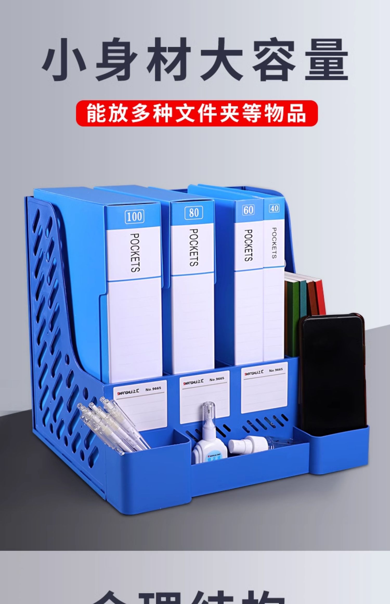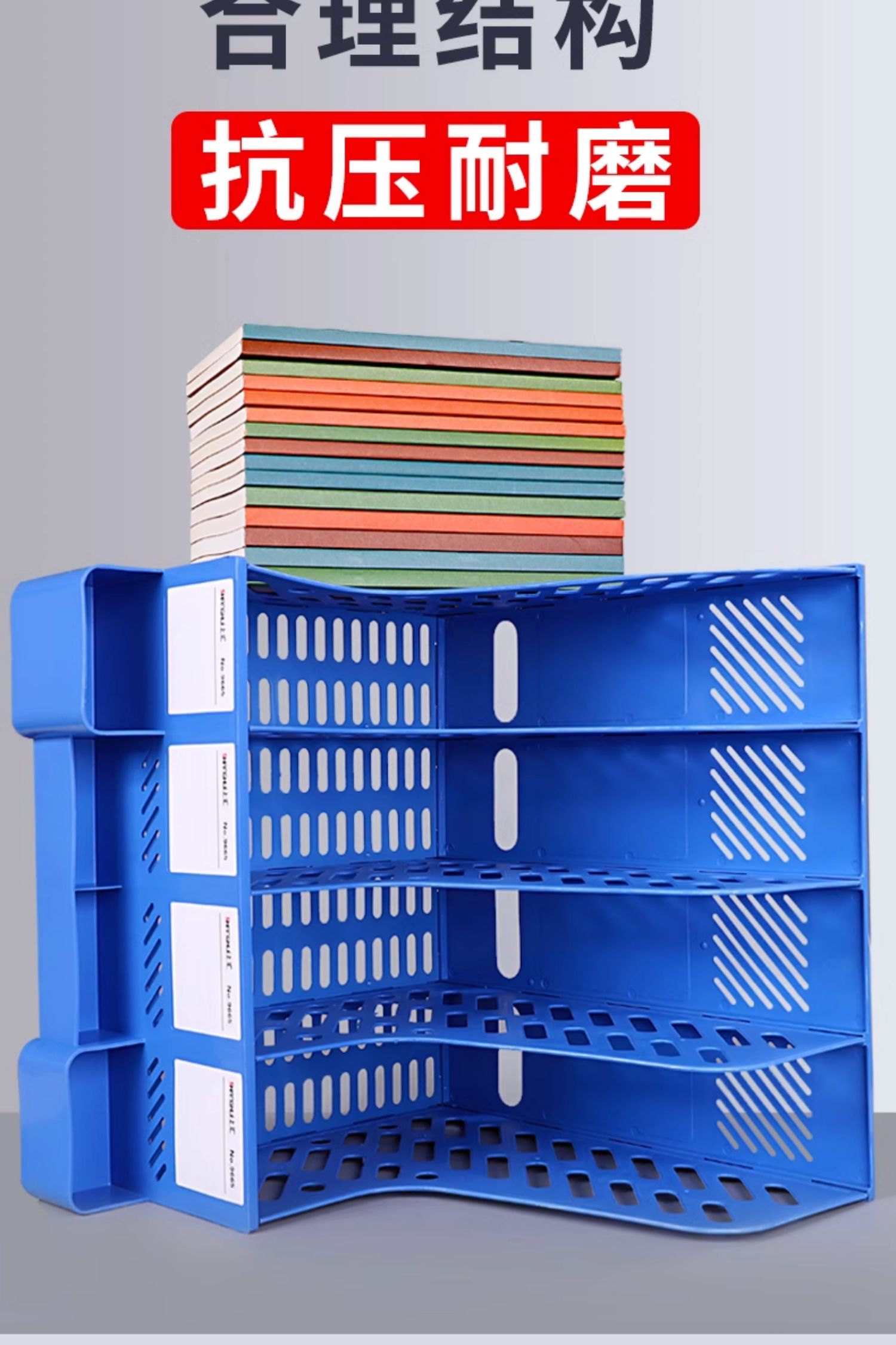 加厚文件架筐子多层四栏文件框办公用品大全资料架档案文件夹收纳盒置物架 四栏-带笔筒-蓝色-加厚款